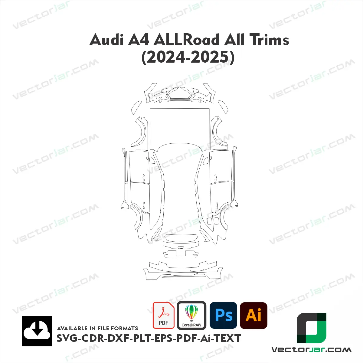 Downloadable Audi A4 Allroad All Trims 2024-2025 Full Car Exterior PPF Template