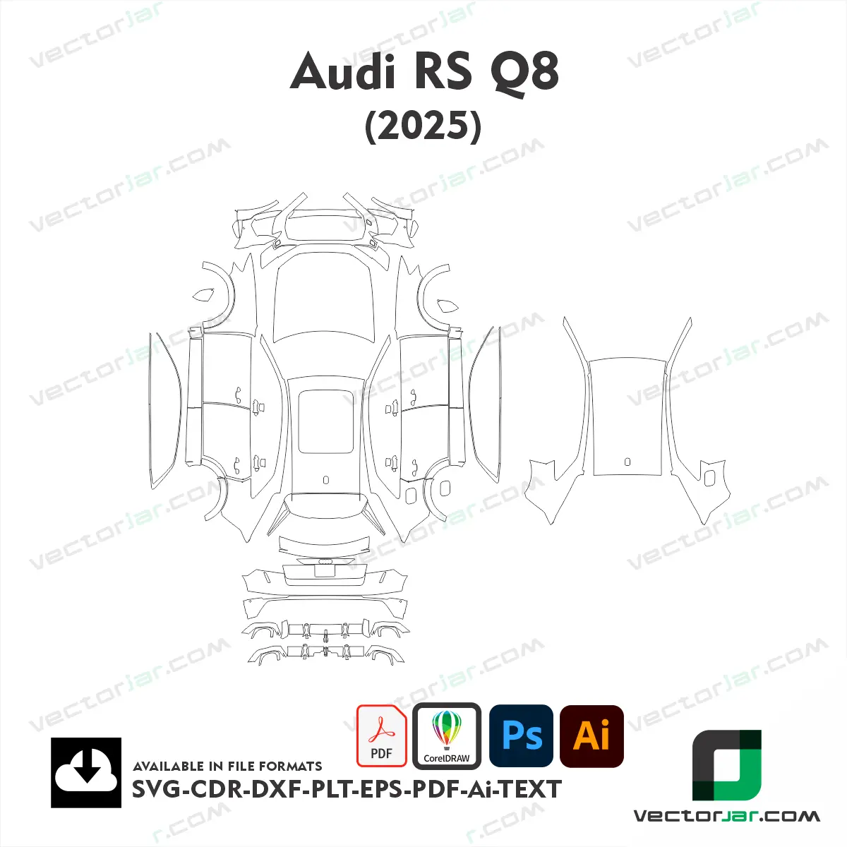 Downloadable Audi RS Q8 2025 Full Car Exterior PPF Template
