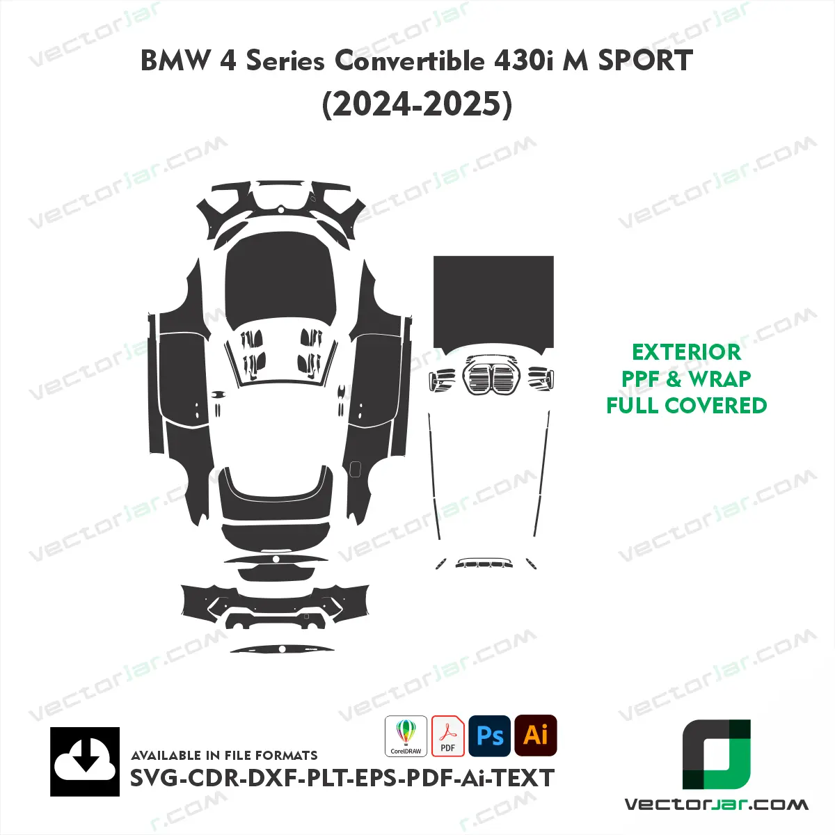 Downloadable BMW 4 Series Convertible 430i M Sport 2024-2025 Full Body PPF Cutting Template