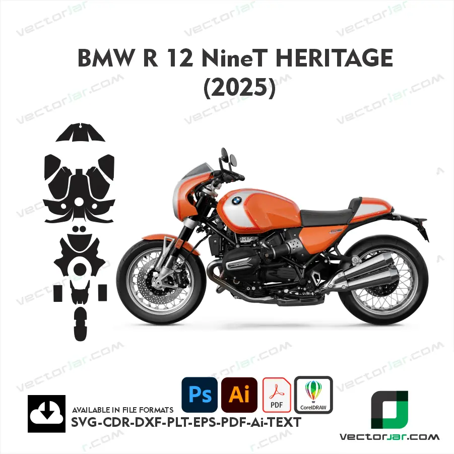 Downloadable BMW R 12 NineT Heritage 2025 Motorcycle PPF & Wrap Template