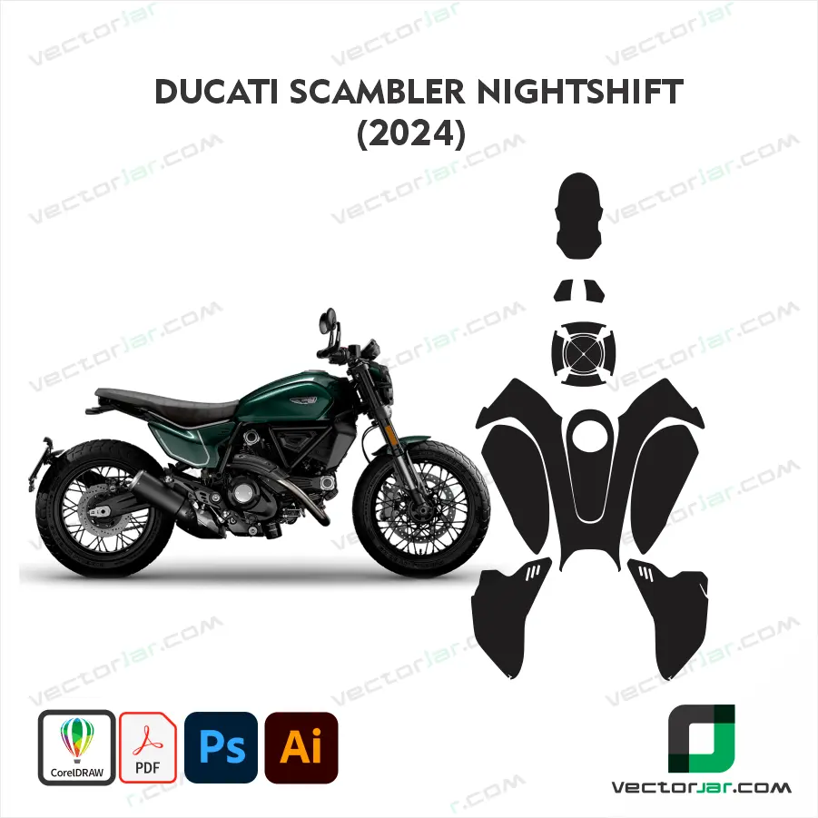 Ducati Scrambler Nightshift 2024 motorcycle PPF and wrap template designed for accurate cutting and clean installation. The layout is structured to support precise alignment and consistent professional results.
