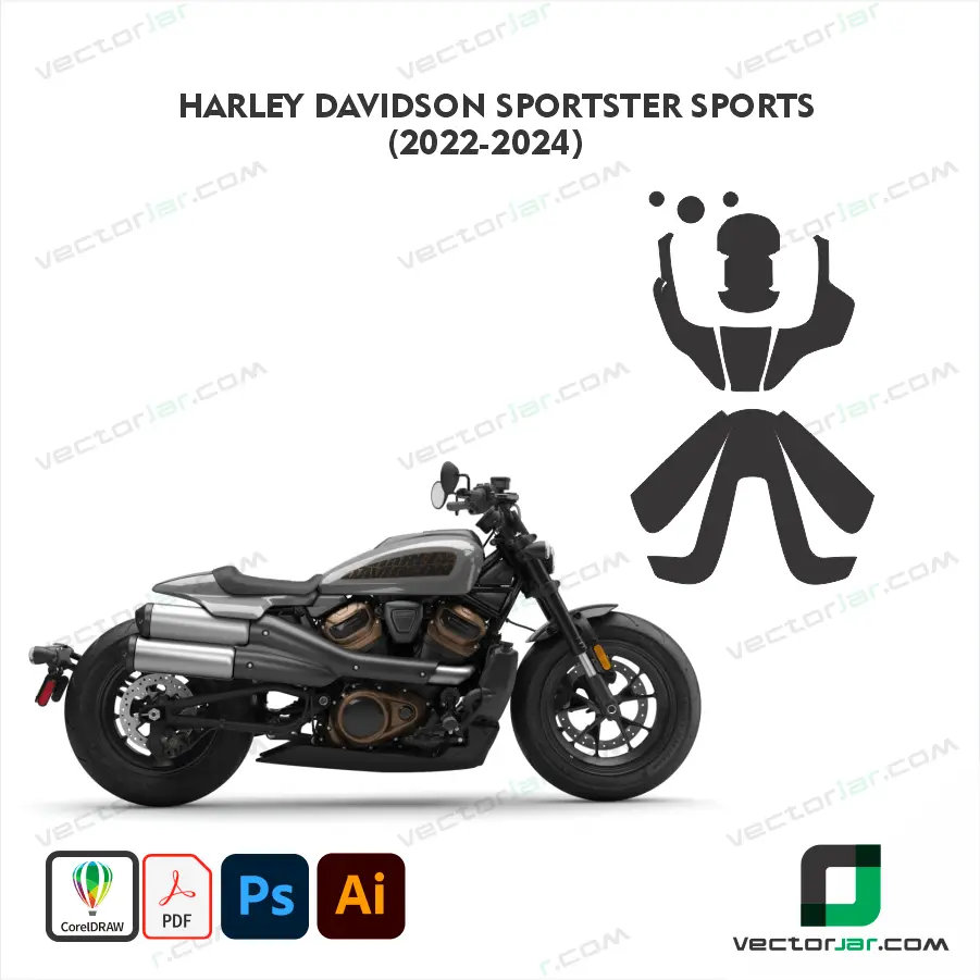 Harley Davidson Sportster S 2022-2024 motorcycle PPF and wrap template designed for accurate cutting and clean installation. The layout is structured to support precise alignment and consistent professional results.